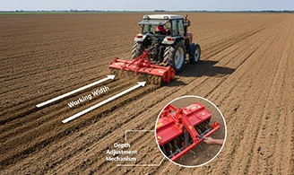 Width: The working width of the rotavator should match your tractor's capacity and your field size. A wider rotavator allows you to cover more area in a single pass, increasing efficiency. However, ensure that your tractor can handle the added width without compromising stability.