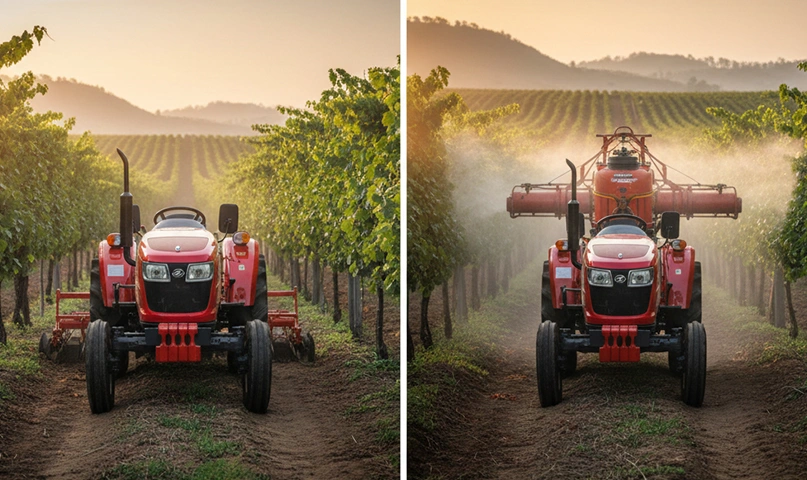 In vineyards, you want a tractor that can manoeuvre between rows, handle sprayers, cultivators, possibly trailers, deal with slopes or soft soils, and offer good reliability. 4WD is often a big plus for traction. But over-capacity means more cost, fuel, and possibly larger turning radius. So the decision must balance tractor price + capacity + vineyard-specific fit.