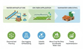 - Sustainable Water Use: Adoption of micro-irrigation systems; drip and sprinkler irrigation; conserving water in rainfed areas; aquifer recharge.