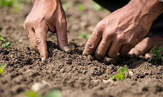 Healthy soil needs a balance of nutrients and organic matter. Incorporating compost, manure, or green manure crops during land preparation improves structure, water retention, and microbial activity.