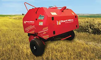 Function: Baler makes a huge collection of crop or anything ready for shipping, sale etc. It is also used in larger scale feedlot production. Mahindra Dharti Mitra Round Baler tailored specifically for efficient farming, these tractor-powered balers effortlessly transform cut straw into evenly round bales.
