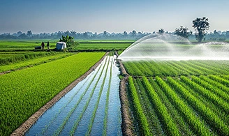 - Description: One of the oldest irrigation methods, flood irrigation involves flooding fields with water from rivers or canals. This technique is commonly used for rice cultivation.