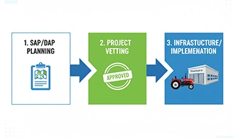 - Monitoring & Evaluation: Emphasis on physical/financial tracking, verifiable indicators, and ensuring that projects deliver intended outcomes for farmers.